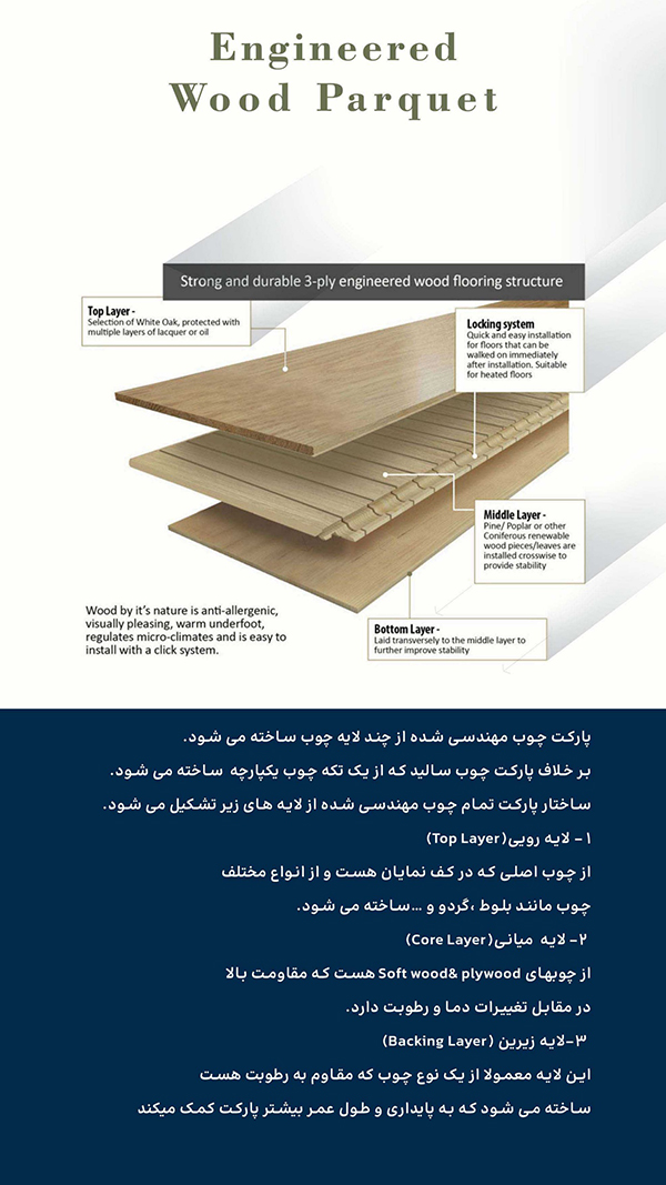 برای دریافت جزئیات بیشتر درباره جنس این پارکت، میتوانید فایل PDF پارکت چوب لیاهوم را مطالعه نمایید.